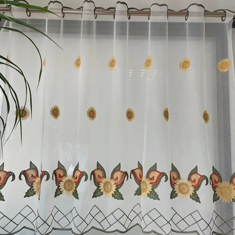 Sunflower Flower Pattern Towel Cheap Embroidery Curtain for Kitchen and Cafe